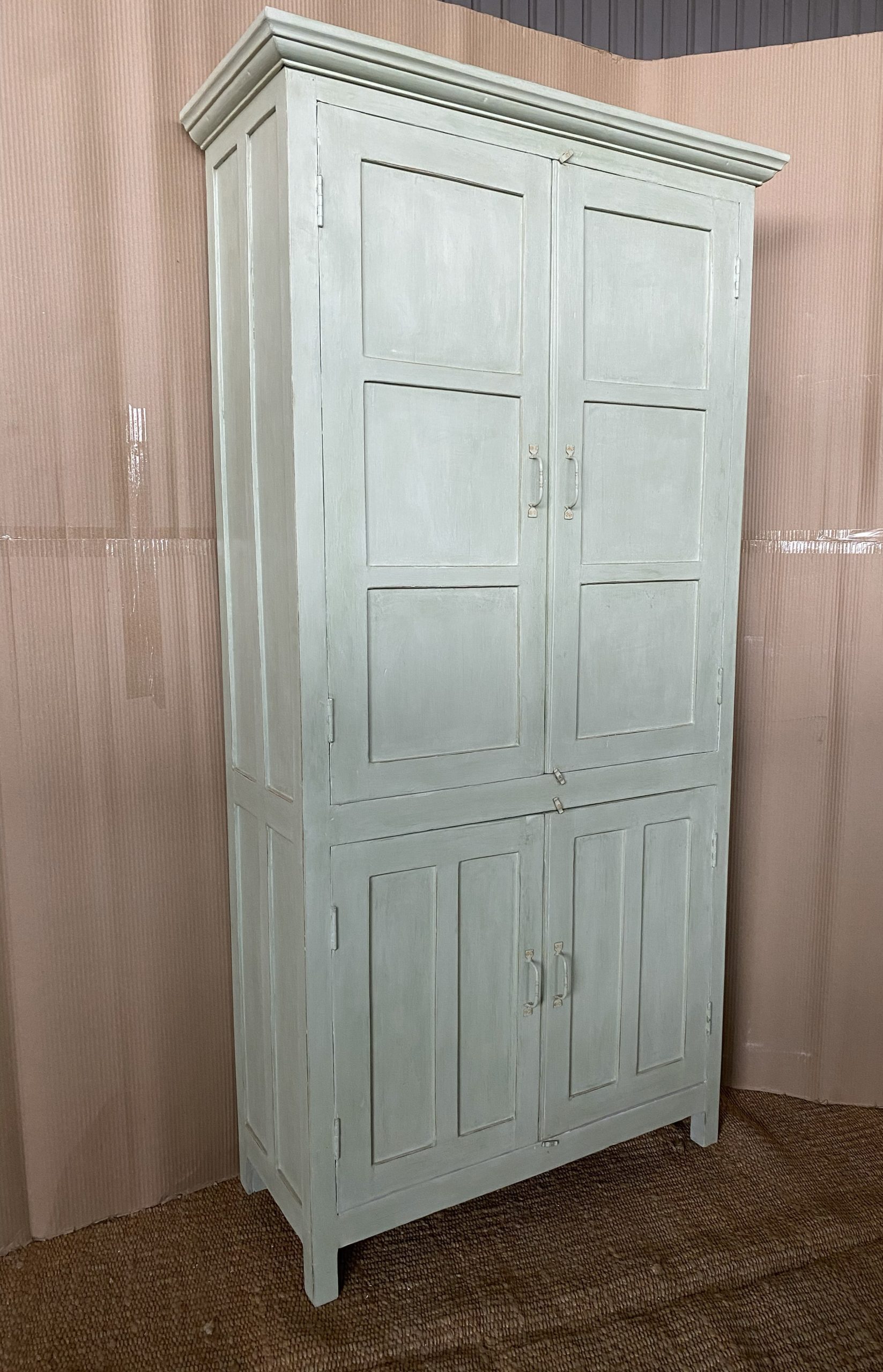 Deze Indiase teakhouten kast, kunnen we ook voorzien van glas in de bovenste deurtjes.